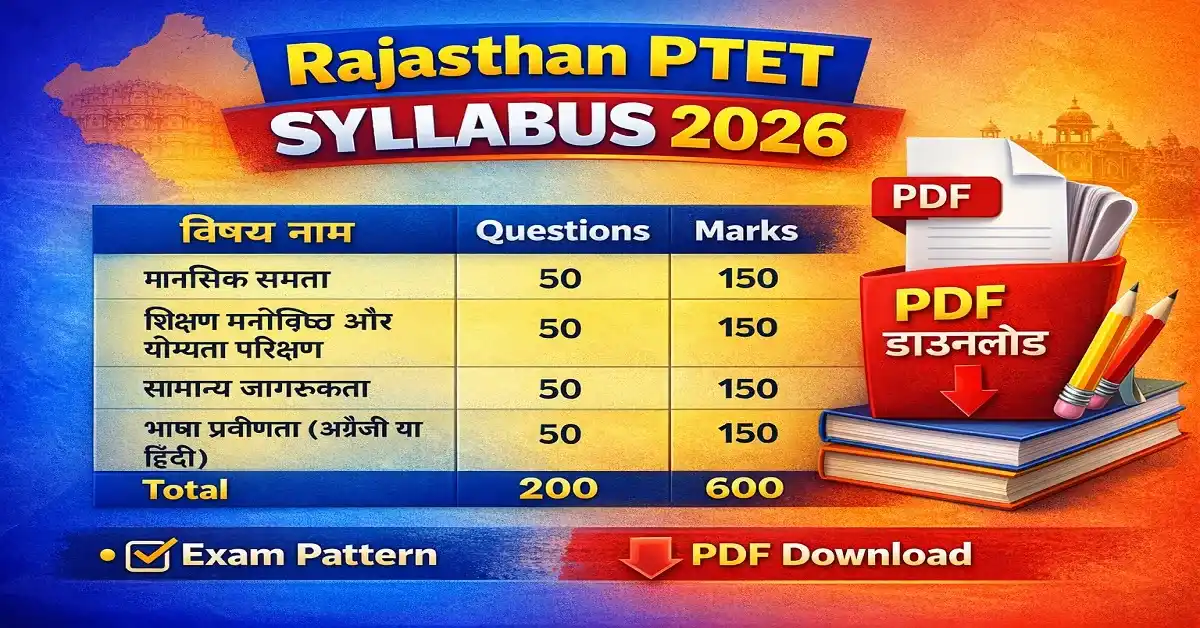 इस लेख में आपको Rajasthan PTET Syllabus 2026 पीडीऍफ़ डाउनलोड लिंक, परीक्षा पैटर्न और परीक्षा तिथि के बारे में जानकारी आपको बताई जा रही है।